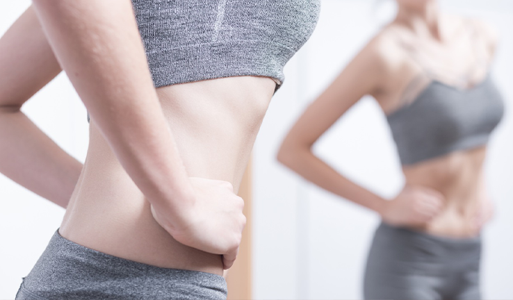 3. تصویر بدنی نادرست: فرد مبتلا معمولاً خود را چاق می‌بیند، حتی اگر بسیار لاغر باشد.
